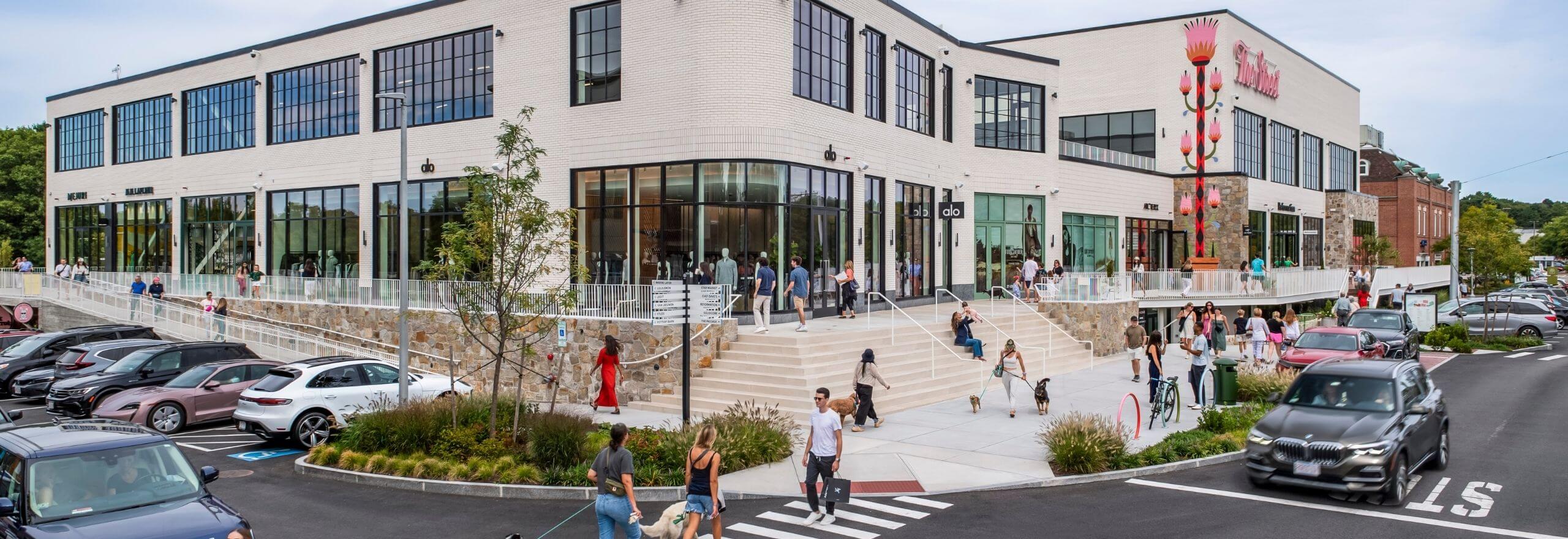 The curvature and brickwork of 27 Boylston remains while the building is reimagined with masonry, metal, wood, enlarged windows, and lush greenery crawling up, around and above, enhancing the architecturally distinctive structure.